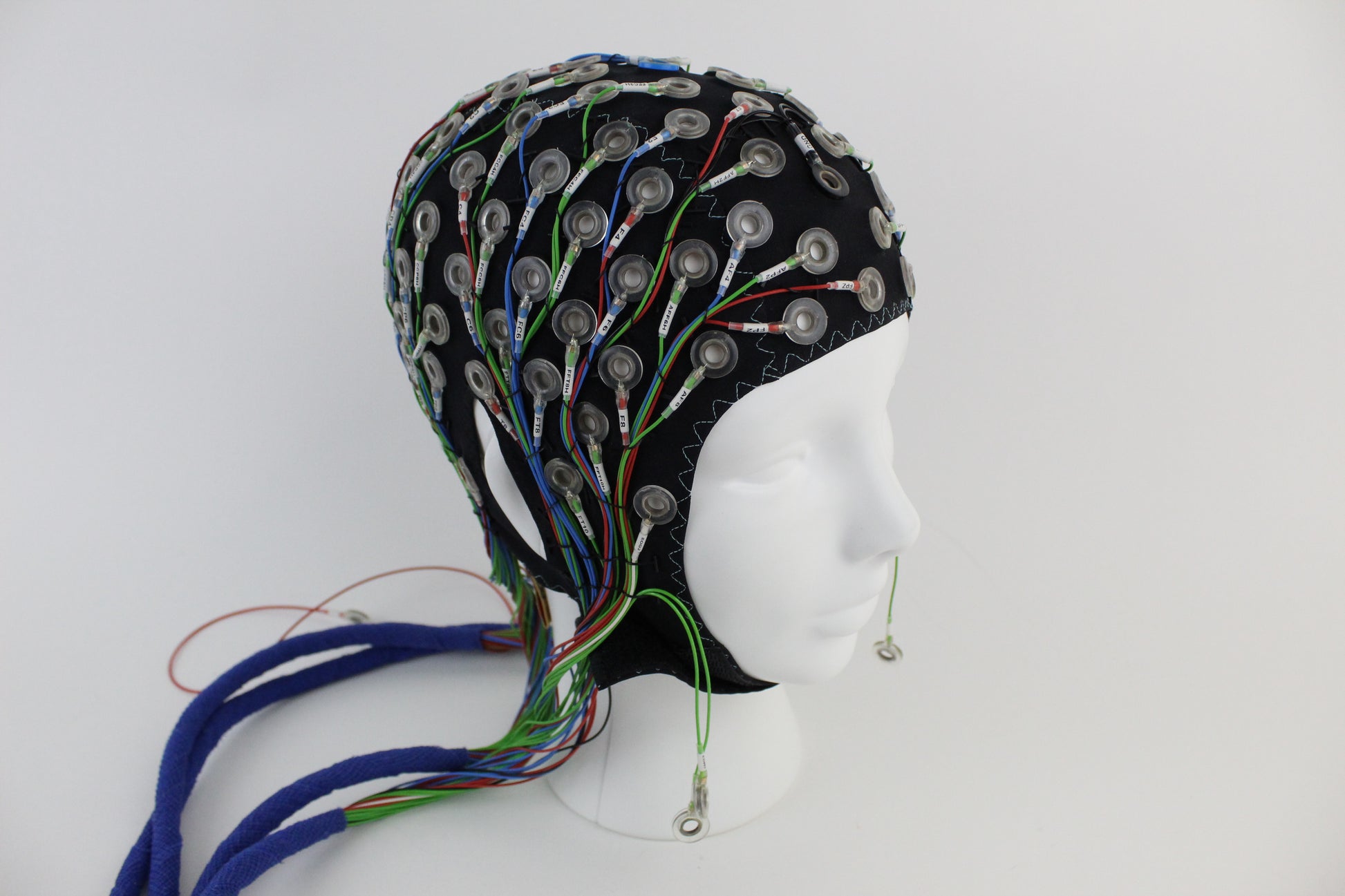 The high elasticity or 'High Comfort' fabric provides an optimal fit for a larger variety of head shapes, and due to its softness is great for children or participants with a sensitive scalp.