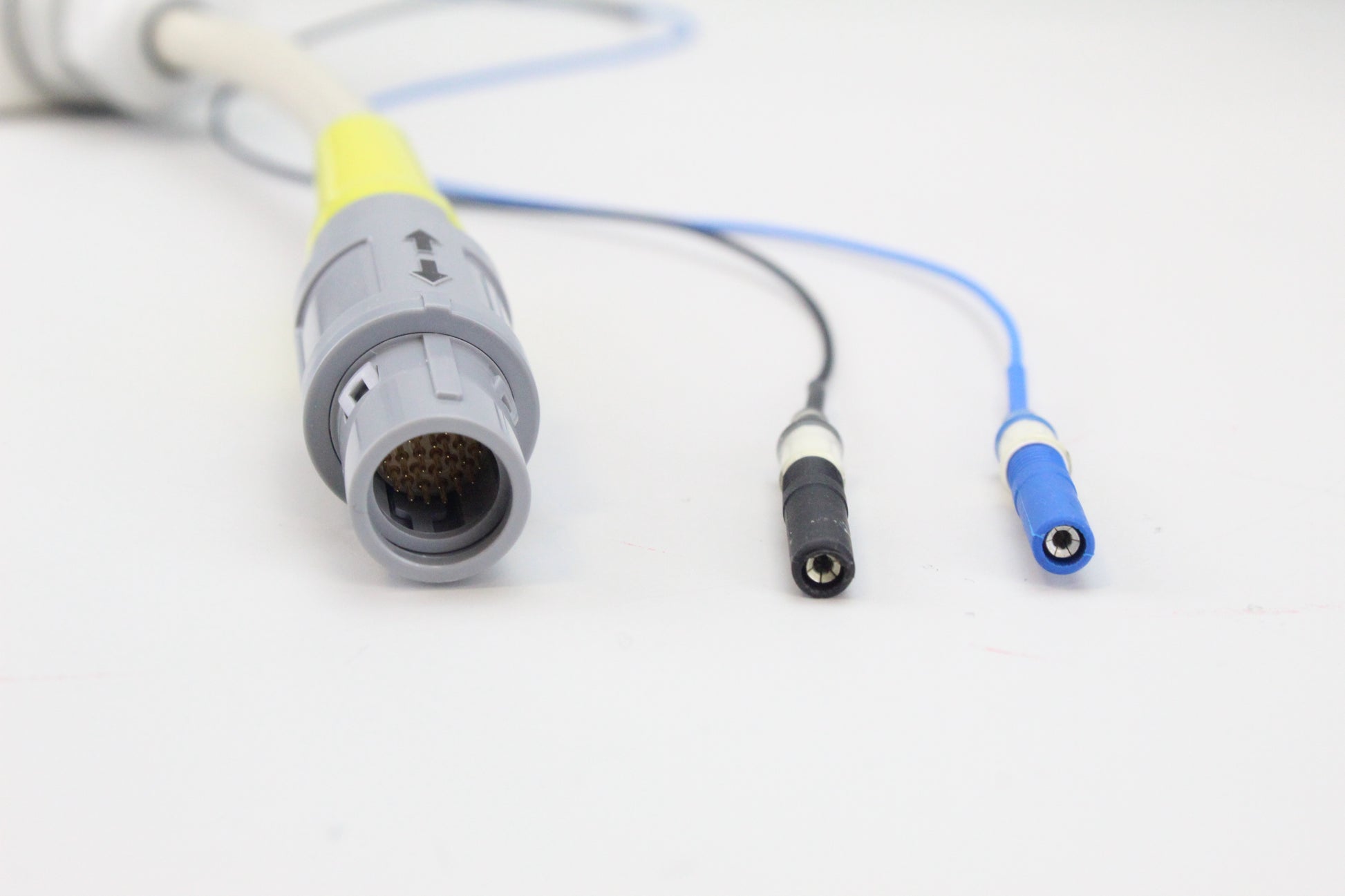 The cable trees meet at a connector boxes with push-pull connectors for TRIUX. From this point, two single sockets for reference and ground cables leave the cable trees.