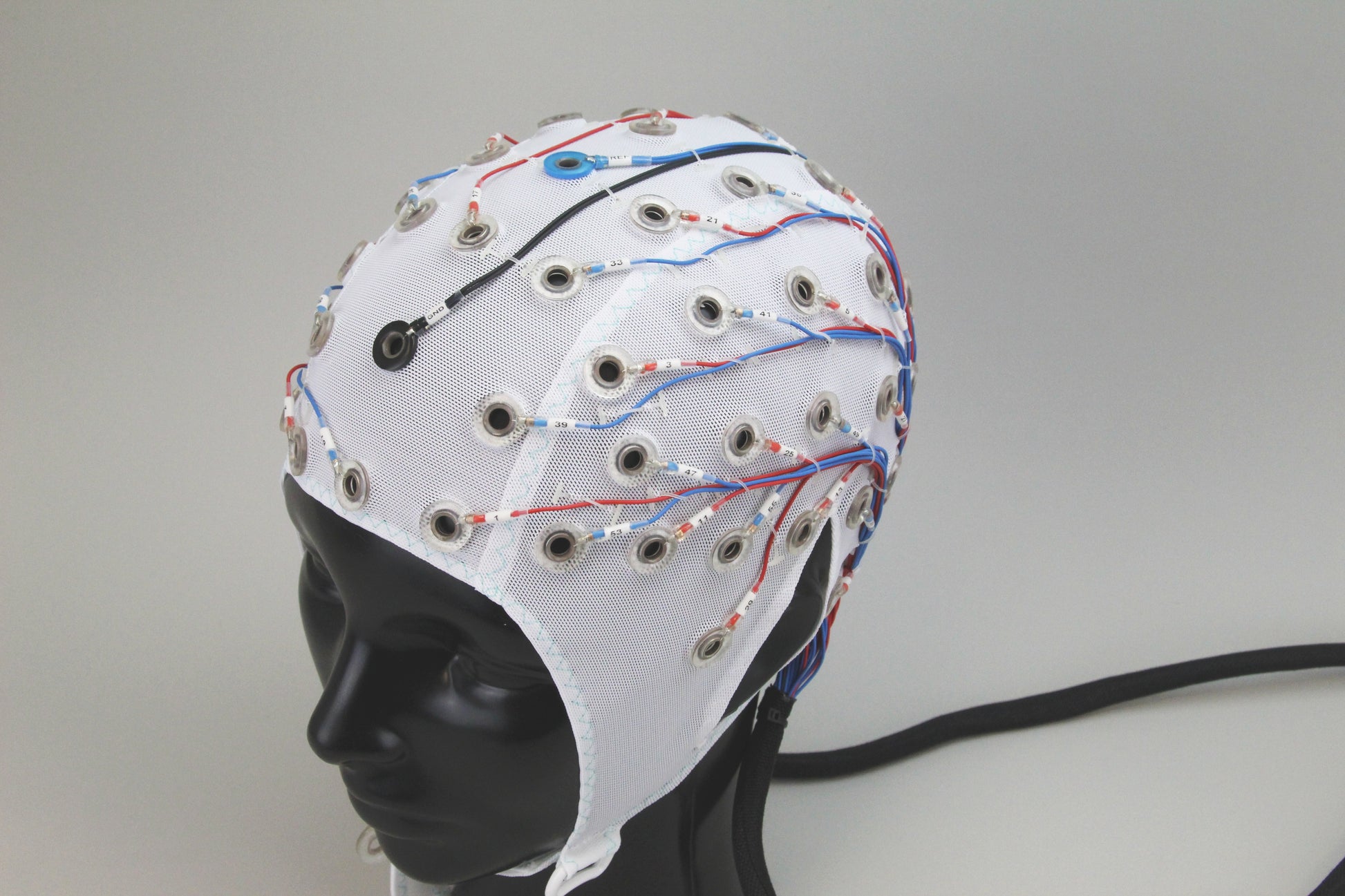 Complete EEG recording cap with 66 (64 signal electrodes, ground and reference) built-in Multitrode electrodes.