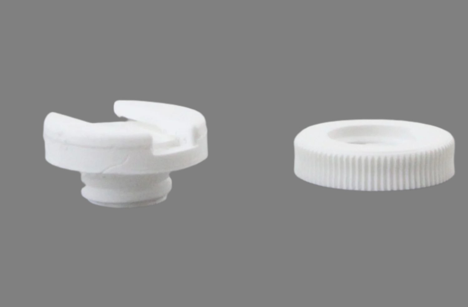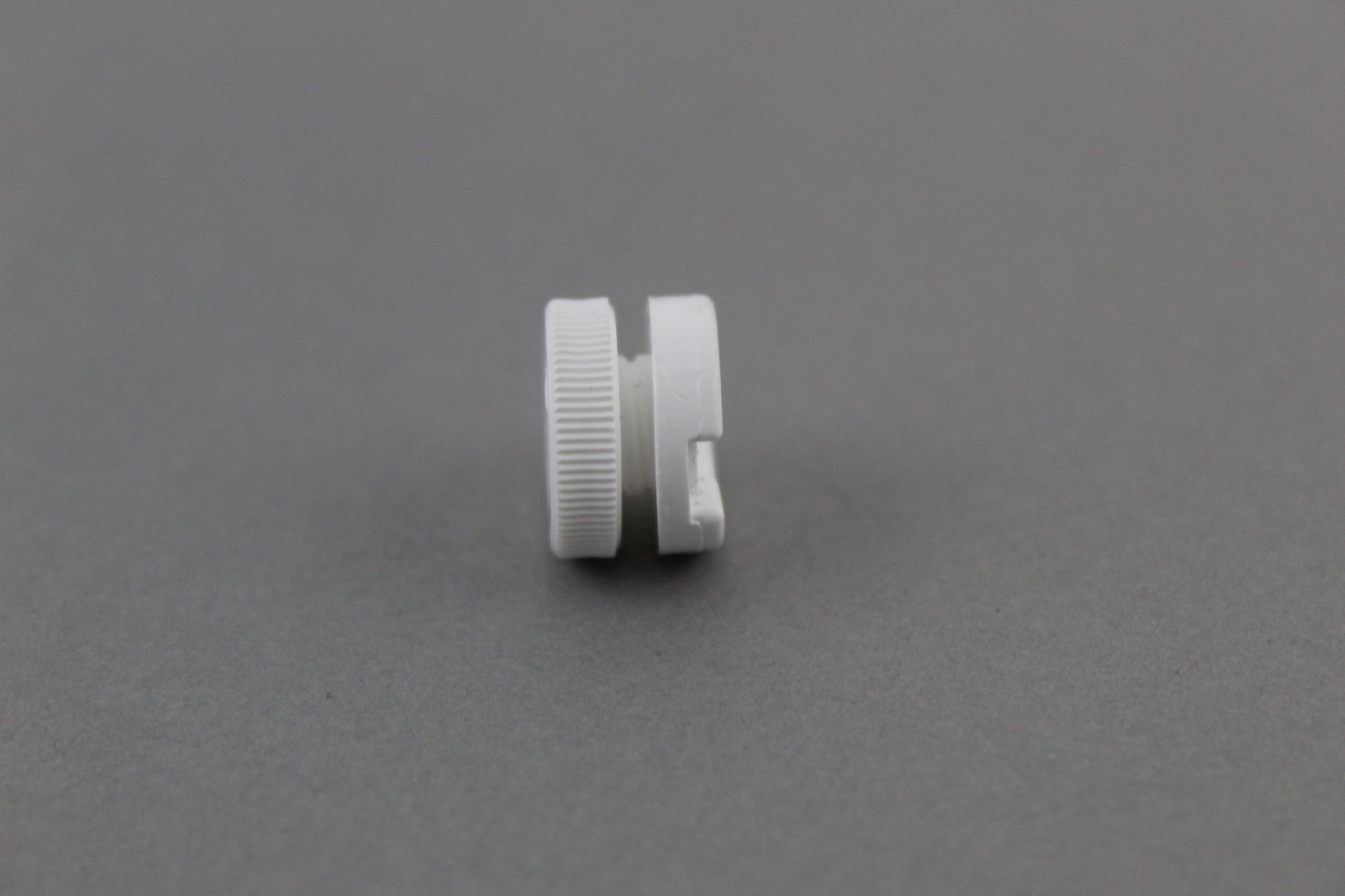 White plastic two-part holder, into which 10mm disposable or gold cup (e.g. Grass/Natus) electrodes can be inserted, before further insertion into our caps.