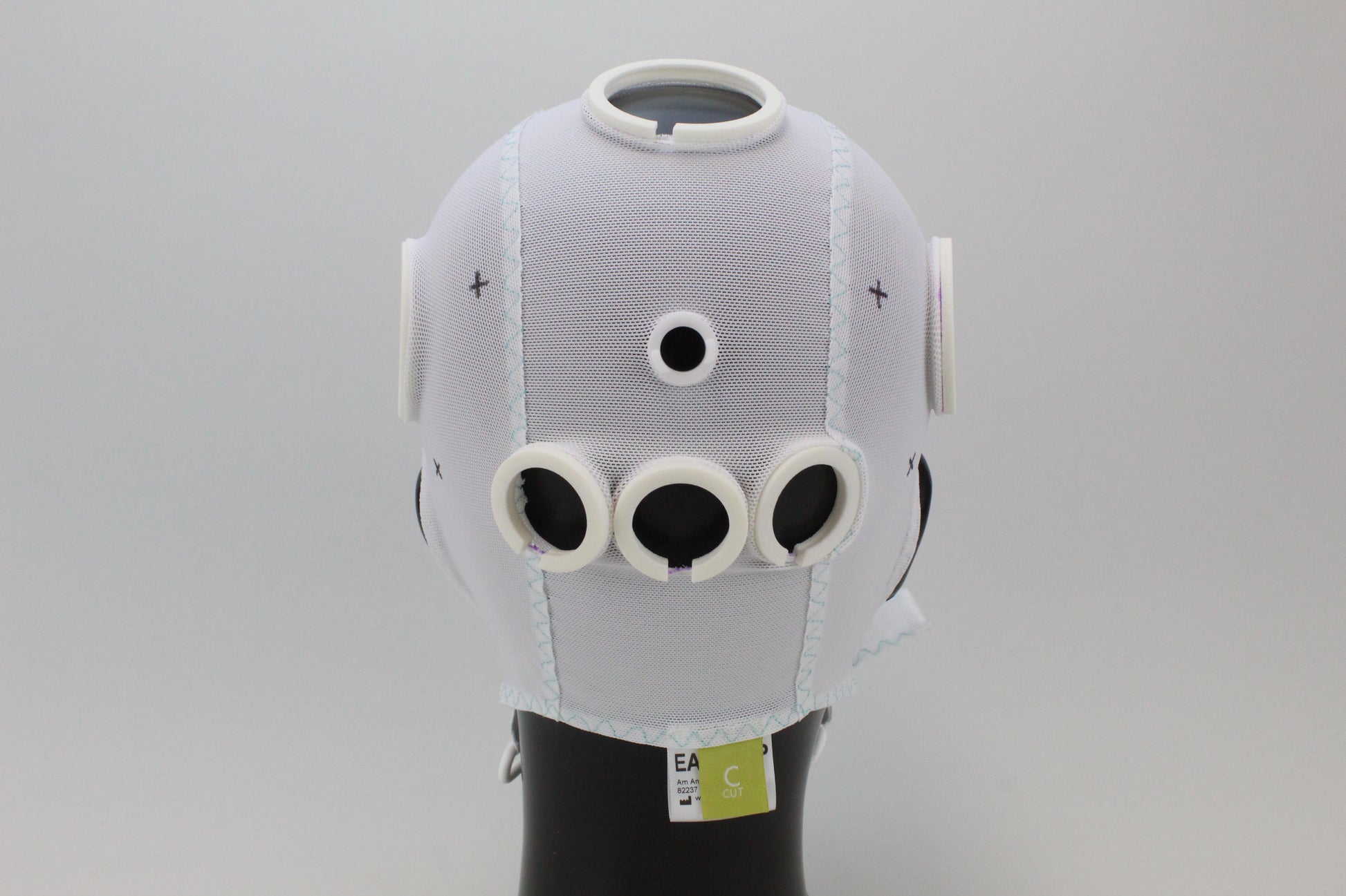 We can also supply the caps just with openings and markings, or bare caps with just earslits for DIY experts. Our fabric can be cut with scissors and holds its structure well, for tips on making appropriate sized openings please contact us.